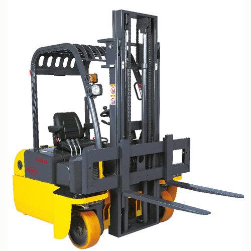 四向叉車以蓄電池為動(dòng)力源,以電動(dòng)機(jī)及其控制系統(tǒng)作為本車的動(dòng)力系統(tǒng),具有噪音小,無排放污染,綠色環(huán)保的特點(diǎn)。
